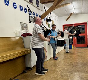 Am Morgen hat es noch in Strömen geregnet aber das Wetter hat es auch in diesem Jahr gut gemeint mit unserem Auftritt am Trummle Bummle 2025 in Zürich. Mit 17 Pipern und Drummern zogen wir durch die Gassen von Zürich und durften einem vielfältigen Publikum unsere Musik präsentieren. Dieser Anlass ermöglicht auch unseren jüngeren Spielern mit dabei zu sein und das Spielen beim Marschieren zu lernen. Allerdings ist es auch mit Abstand unser jeweils längster Auftritt im Jahr mit rund 3 Stunden laufen und spielen. Das abschliessende Bier im Big Ben Pup belohnt jeweils die Mühen.